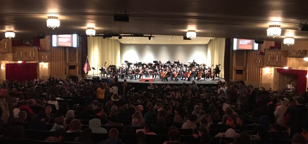 The Sioux City Symphony Orchestra and many, many area schools have teamed up with Carnegie Hall’s Link Up program to bring live orchestral music to thousands of students. Those thousands of students aren’t nationwide. They’re right here in Siouxland. Eighteen hundred elementary school students packed the Orpheum Theatre just this morning to listen to and participate in live orchestral music. And for many of them, it was their first time being in the Orpheum or seeing an orchestra.